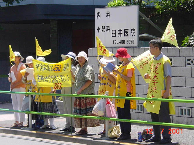 日本法轮功学员在中国驻日本大使馆前和平请愿 紧急呼吁制止江氏集团虐杀法轮功学员 日本 2001-7