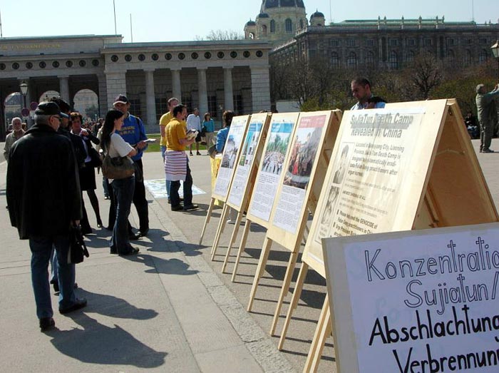 亚欧财经部长会谈 奥地利学员在总统府外抗议中共迫害法轮功的暴行2006-4