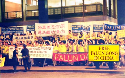 在联合国高峰会议期间, 法轮功学员在纽约和平请愿,呼吁江泽民政府停止镇压法轮功 2000-09-06