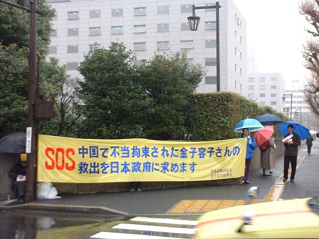 日本外务大臣访华前夕,法轮功学员在国会前呼吁营救被非法关押的日本学员金子容子 2003-04-02
