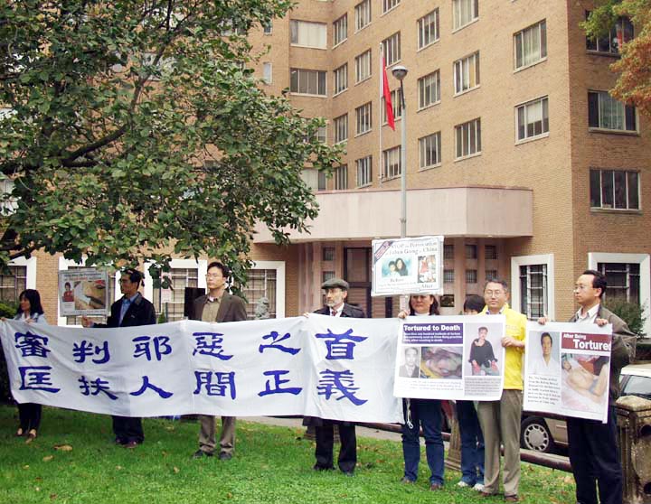 华盛顿法轮功学员在中国大使馆前和平请愿,呼吁公审迫害法轮功的原凶江泽民 2004-10