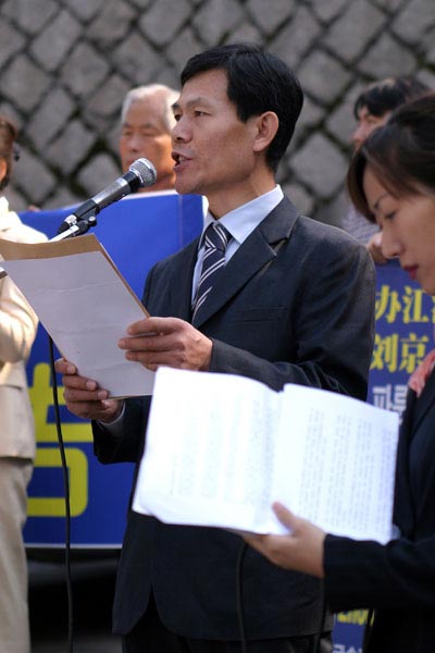 促中共官员弃恶从善 韩国学员向中使领馆宣读公告━2005年10月24日