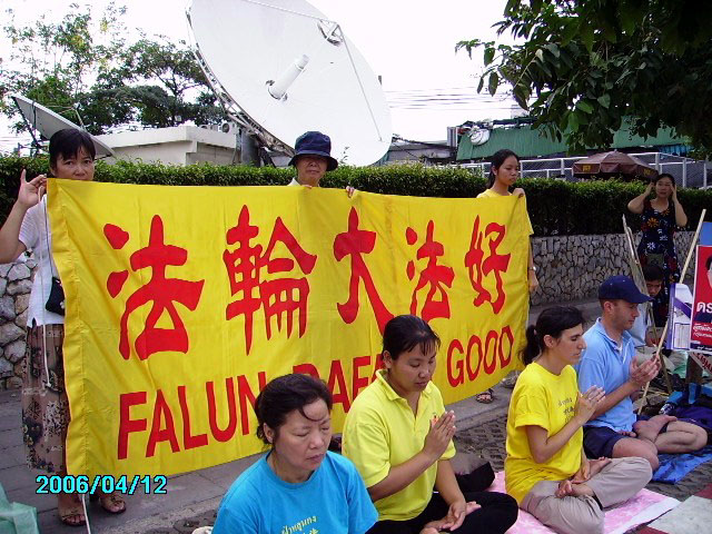 泰国法轮功学员在中使馆对面和平抗议中共活体摘取器官并焚尸灭迹的黑幕2006-4-12