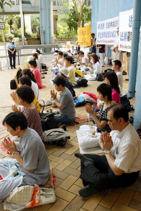 香港法轮功学员到新加坡驻香港总领事馆请愿,呼吁新加坡更正错误判决
