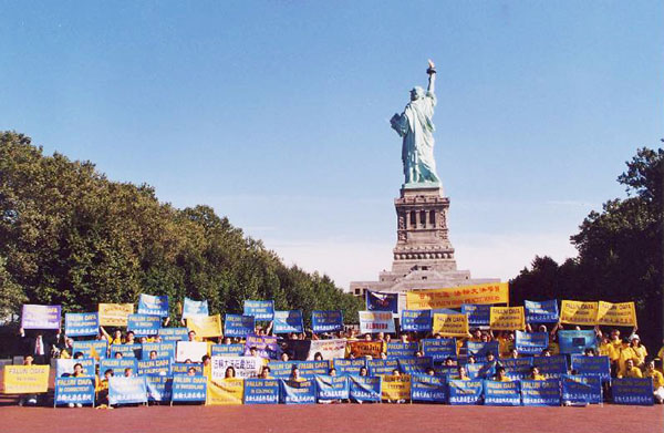 法轮功学员聚集纽约, 呼吁中国政府停止镇压法轮功 2000-09
