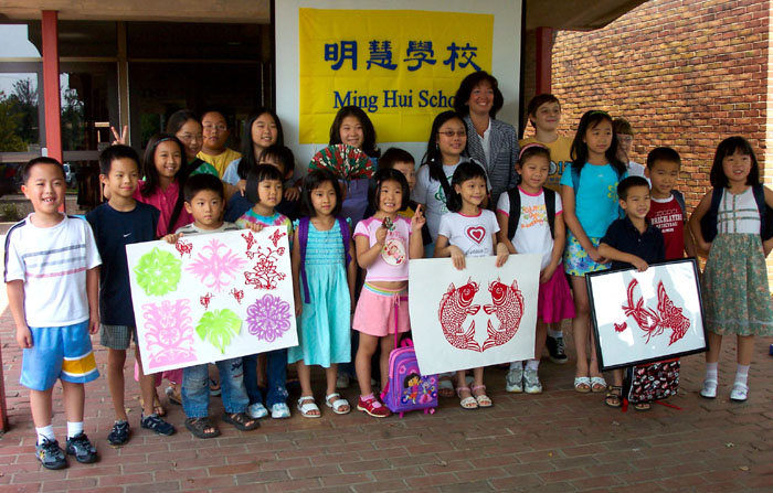 美国新泽西明慧学校于2006年9月9日开学,图为Patricia Flannery 市长与孩子们合影留念