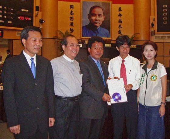 台湾台南市议会提案谴责中共暴行图为:台南市副议长,提案人,联署人