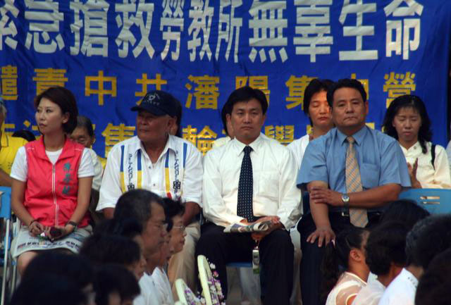 台南法轮功学员举办烛光悼念活动 悼念被中共迫害致死的同修 揭露中共迫害法轮功 图为台南议员到场支持 2006-7-20