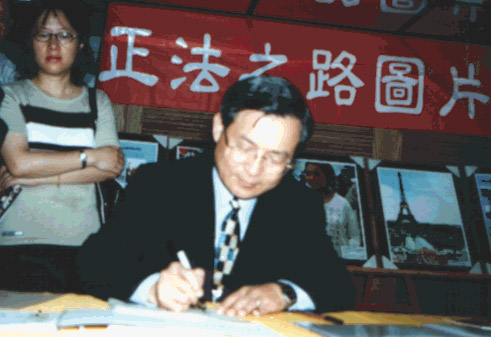 台南市市长签名祝贺“正法之路图片展”开幕 台湾 2002-4