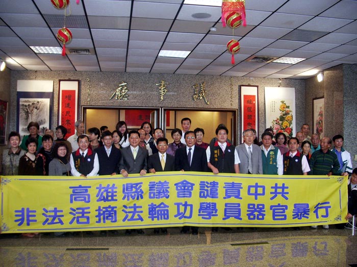 高雄县议会提案通过谴责中共活摘器官暴行图为杨秋兴县长,许福森议长与成员合照2007-2-15
