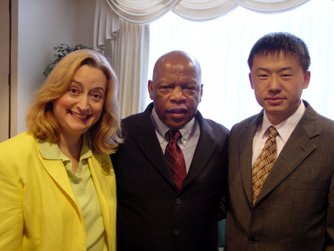 美国国会议员代表约翰-路易斯支持法轮功学员的人权 图为与法轮功学员的合影 美国 2003-6-14
