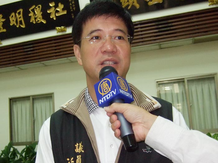 台湾桃园县议会通过提案谴责中共活摘器官图为县议员褚春来表示应遏止中共惨无人道的行径