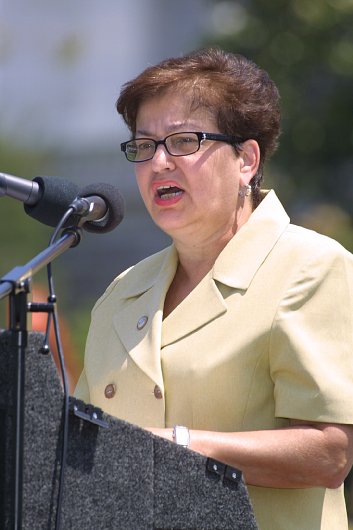 7.20华盛顿法轮功集会上20多位国会议员和非政府组织人士到会发表支持声明 谴责残酷迫害 图为妇女组织执行副主席Olga VivesMs. 美国 2002-7-20