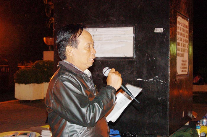 印尼泗水地区学员烛光夜悼在迫害中遇难的大陆同修。 图为印尼社团调查研究机构主席 Drs. Aruchat Djaswadi 前来支持 2006-7-8