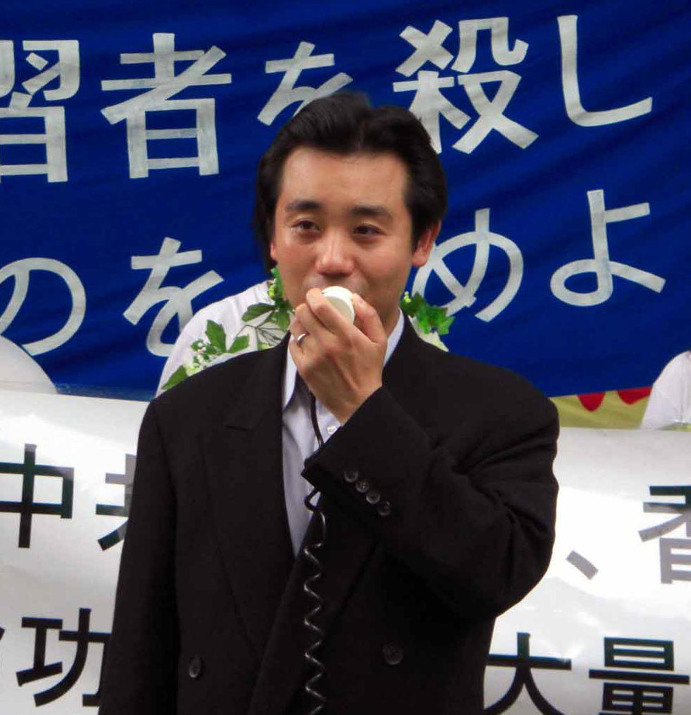 法轮功学员在东京举行反迫害集会和游行图为东京都议员初鹿明博在集会上演讲2007-7-15