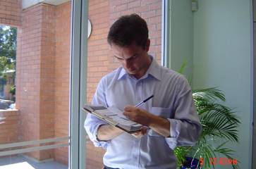 澳洲法轮功学员海岸线车旅揭露中共活摘器官,图为记者在采访完后签名支持法轮功