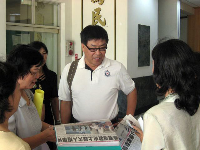 法轮功学员拜访苗栗县议会陈述港府非法遣返事件图为县议员听学员讲真相2007-7-10