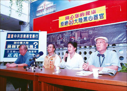 谴责中共活摘器官高雄市议会通过提案图为高雄市议员陈英灿(右三)召开记者会