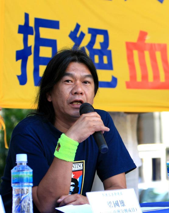 CIPFG亚洲分团举行同步记者会公布人权圣火全球巡回传递活动图为香港立法议员梁国雄2007-8-2