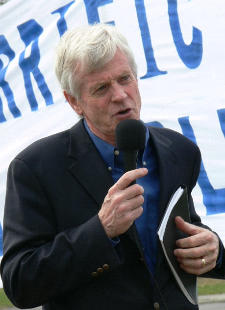 加拿大学员在外交部前集会,呼吁调查集中营,图为:David Kilgour前外交部亚太司司长在集会上发言 2006-4-12