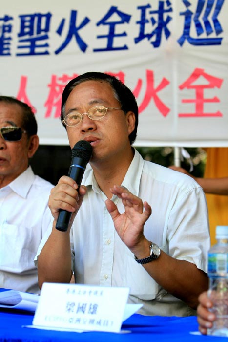 CIPFG亚洲分团举行同步记者会公布人权圣火全球巡回传递活动图为议员林咏然2007-8-2