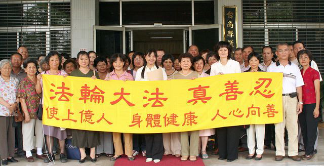台湾台南县议会通过谴责中共活摘器官案 图为学员与提此议案的议员合影