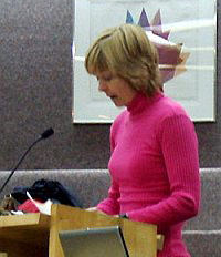 加拿大瀑布市议会宣布五月十三日为瀑布市法轮大法日图为学员在市议会发言