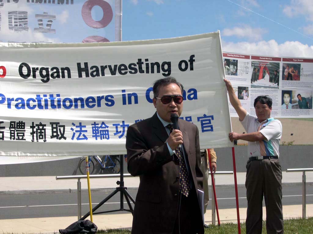 澳洲学员在堪培拉国会前举行集会谴责中共活摘器官的暴行图为越南社团领袖毕驰•范演讲