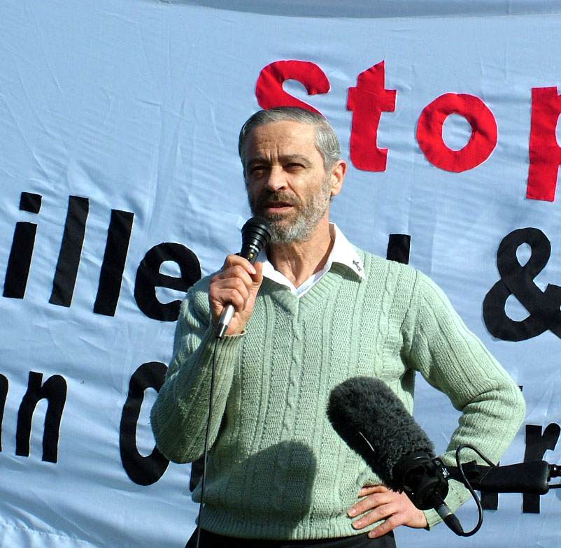法轮功学员在澳洲总理霍华德访问中国前夕在国会山庄前和平请愿图为天主教堂神父 Peter Caruana