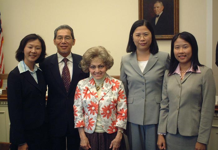 美国会听证香港遣返事件图为台湾驻美副代表高硕泰(左2)外交委员会主席兰托斯夫人(中)与学员合影2007-8-2