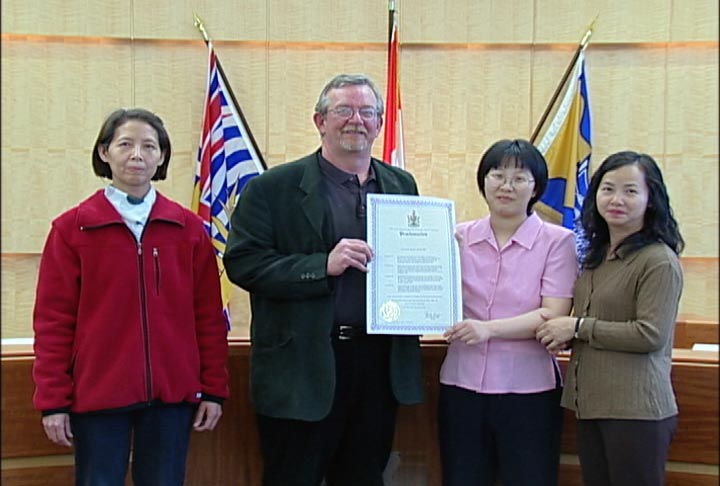 加拿大本那比市市长第二次向法轮功学员颁奖并宣布五月为“法轮大法月” 加拿大 2004-5-4