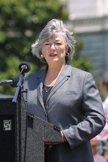 7.20华盛顿法轮功集会上20多位国会议员和非政府组织人士到会发表支持声明 谴责残酷迫害 图为国会议员Lynn Woolsey 美国 2002-7-20