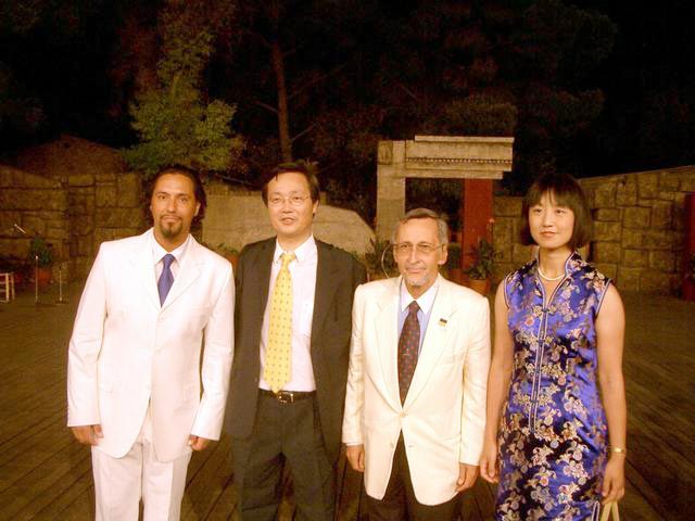 希腊国际外交官协会副会长(右二)热心为法轮功学员提供帮助 希腊