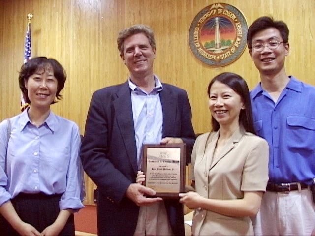 在新泽西州众议员福朗克-柏龙召开的市政会议上法轮功学员感谢众议员的支持和帮助 美国 2003-8