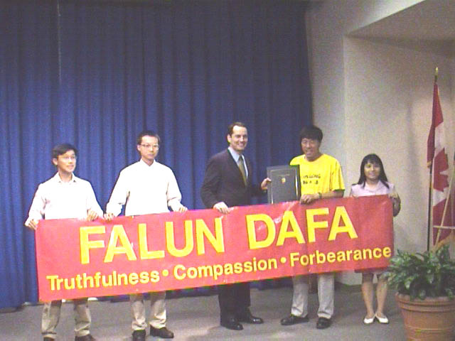 德州圣安东尼奥市市长支持法轮功学员,图为与法轮功学员合影 美国 2002-5-13