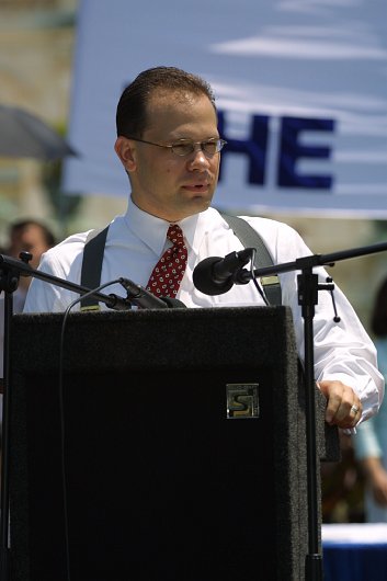 7.20华盛顿法轮功集会上20多位国会议员和非政府组织人士到会发表支持声明 谴责残酷迫害 图为宗教与国家政策协会主席 美国 2002-7-20