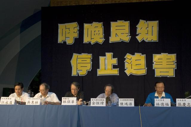 台湾法轮功学员七•二零举办悼念会图为各界政坛人士、人权团体代表声援停止迫害