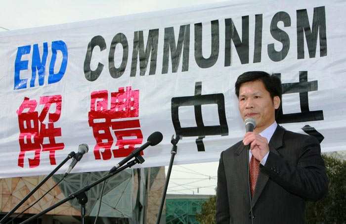 学员及各界人士在墨尔本集会谴责中共活摘器官暴行,图为中国政党联盟副秘书长阮杰先生发言