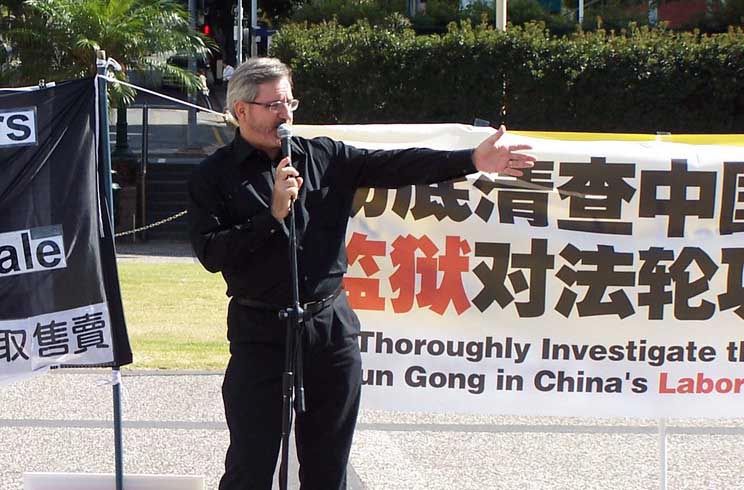 澳洲参议员安德鲁•巴特利特加入了CIPFG,图为在揭露活摘器官罪行的集会上发言