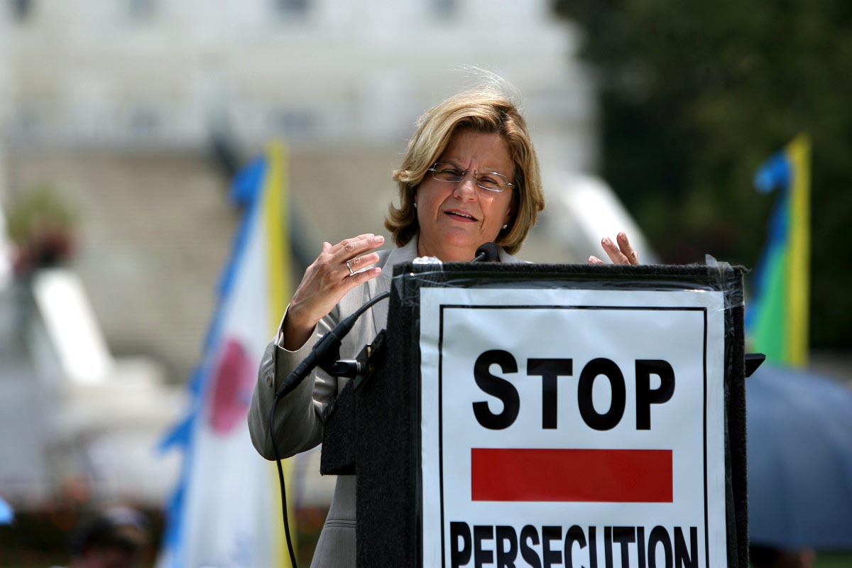 法轮功学员于“七•二零”在华府集会吁解体中共结束迫害图为国会议员罗斯-雷婷恩发言2007-7-19