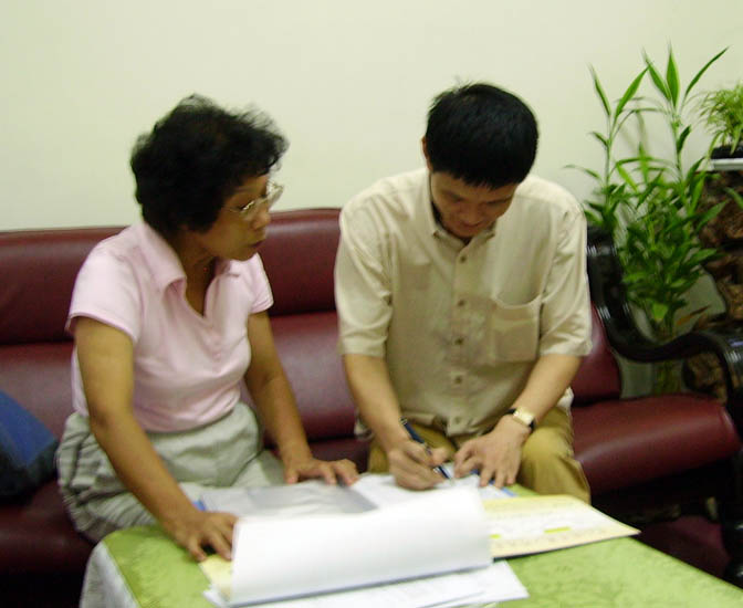 台湾屏东学员向各阶层讲真相,图为乡民代表主席董志豪签名声援联合调查团