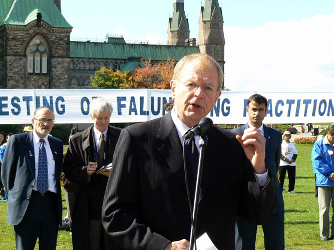 加拿大学员和国会议员在国会楼前集会吁制止中共活摘器官的罪行,图为国会议员吉姆•皮特逊发言