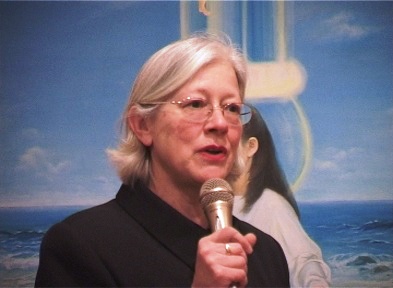 “坚忍不屈的精神”艺术展在澳洲维省本迪戈市的Dudley House画廊展出 图为“大赦国际”的代表简.斯比尔女士