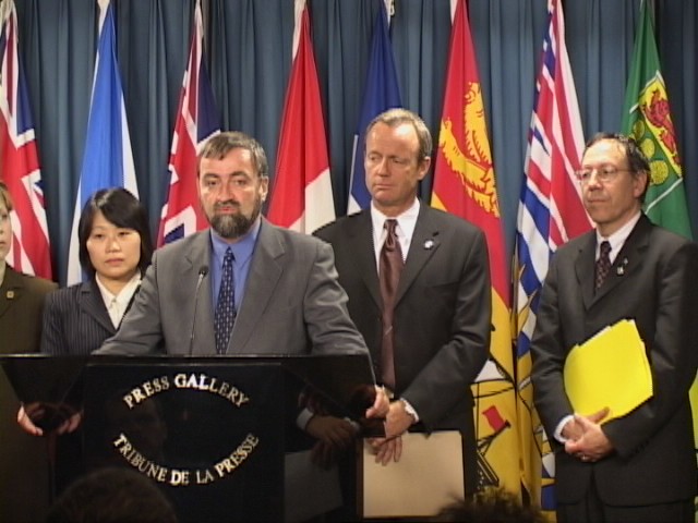 加拿大国会议员魁党副领袖安多瓦·都贝先生在新闻发布会上发言表示支持法轮功 加拿大 2002-10-23