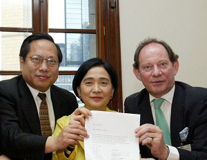爱德华•麦克米兰-斯考特(右一)与多名香港立法会议员签署联合声明 促请中共政权重视人权2006-9-7