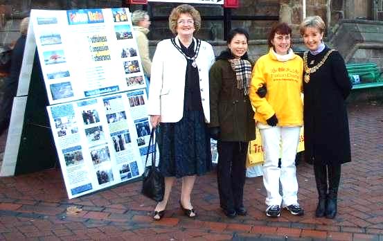 英国达彼市市长亲临街头看望洪法讲真相的法轮功学员 英国 2001-11-8
