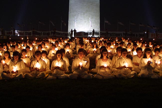 法轮功学员汇聚华府烛光守夜 呼吁紧急救援在中国被迫害的同修 美国 2001-7-20