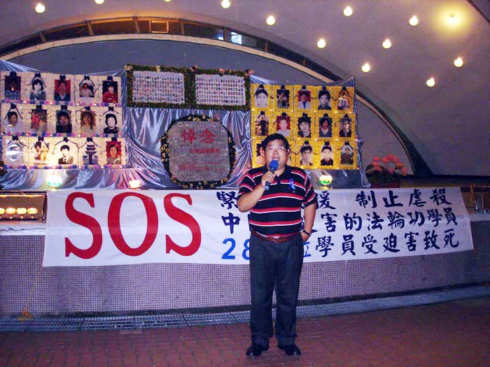 台湾嘉义烛光悼念被迫害致死的大陆法轮功学员 揭露中共迫害真相 图为议员致词2006-5-6