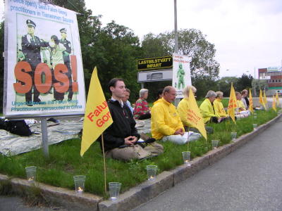 瑞典学员在哥德堡中国领事馆前举行烛光守夜悼念在中国遭受酷刑致死的同修