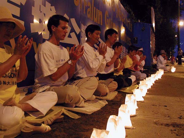 温哥华法轮功学员在烛光守夜 加拿大 2003-7